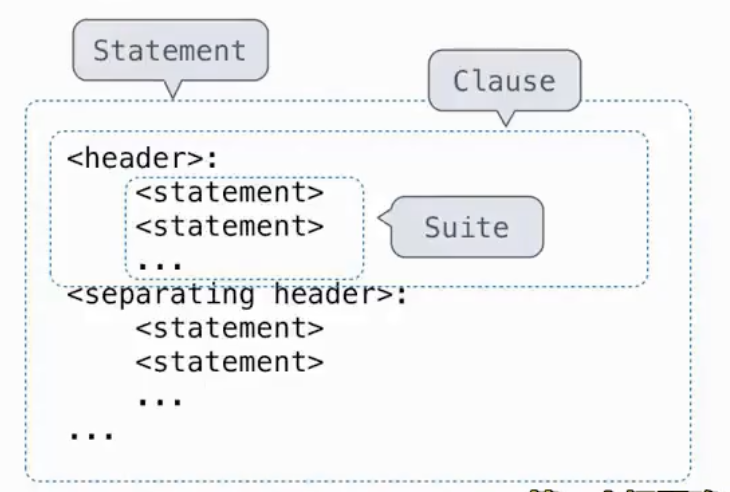 - Statement一整个复合语句、Clause一个从句、Suite套件一系列语句